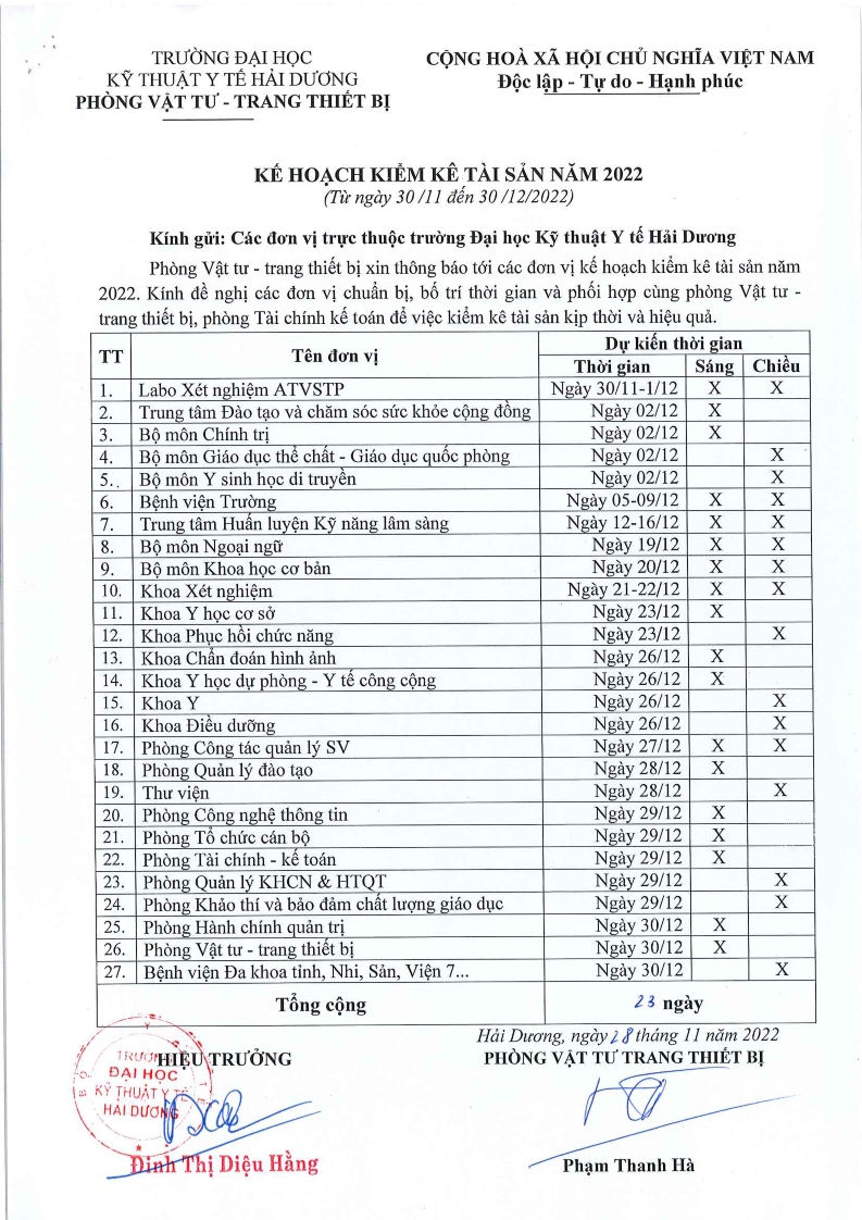 Thông báo | Kế hoạch kiểm kê tài sản năm 2022 Số lượt đọc:
