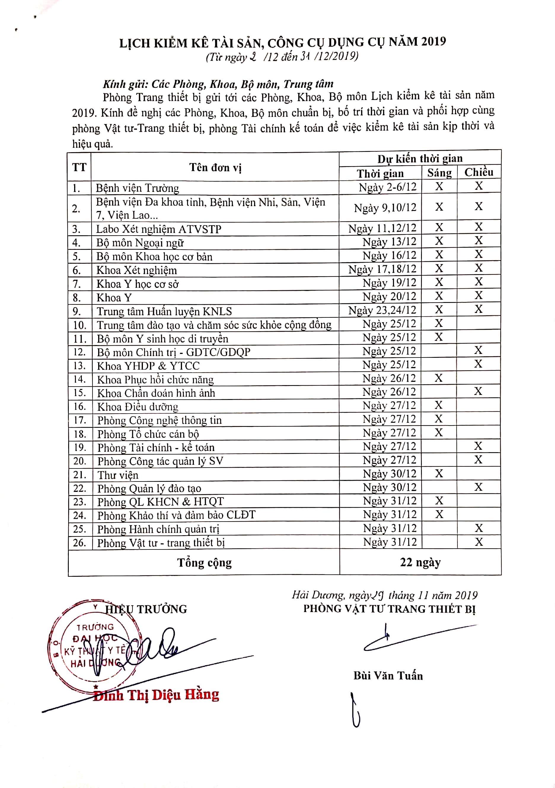 Thông báo | Lịch kiểm kê tài sản năm 2019 Số lượt đọc: