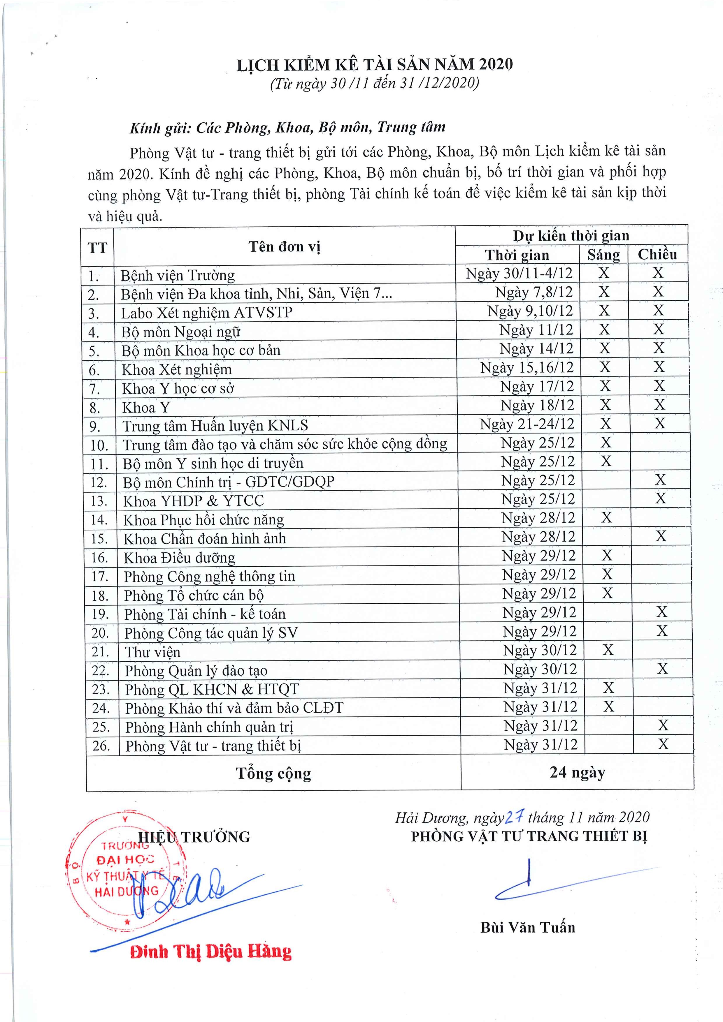 Thông báo | Lịch kiểm kê tài sản năm 2020 Số lượt đọc: