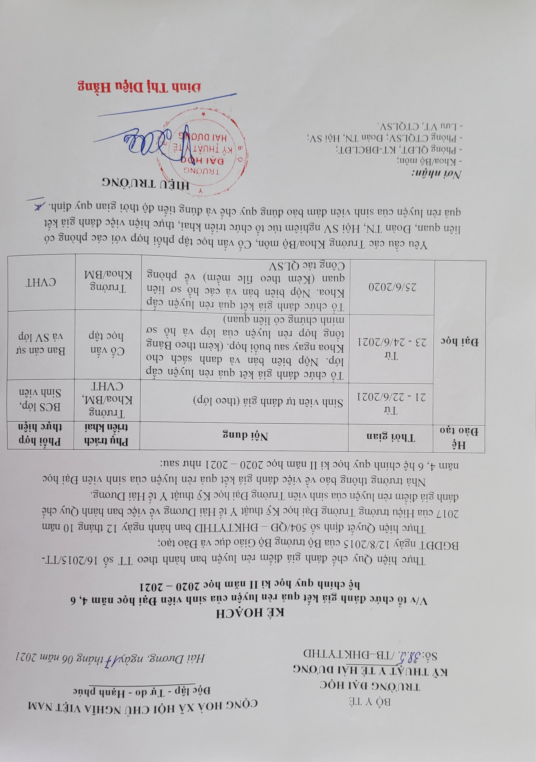 Thông báo | Kế hoạch tổ chức đánh giá kết quả rèn luyện của sinh viên Đại học năm 4,6 hệ chính quy học kỳ II năm học 2020 - 2021 Số lượt đọc: