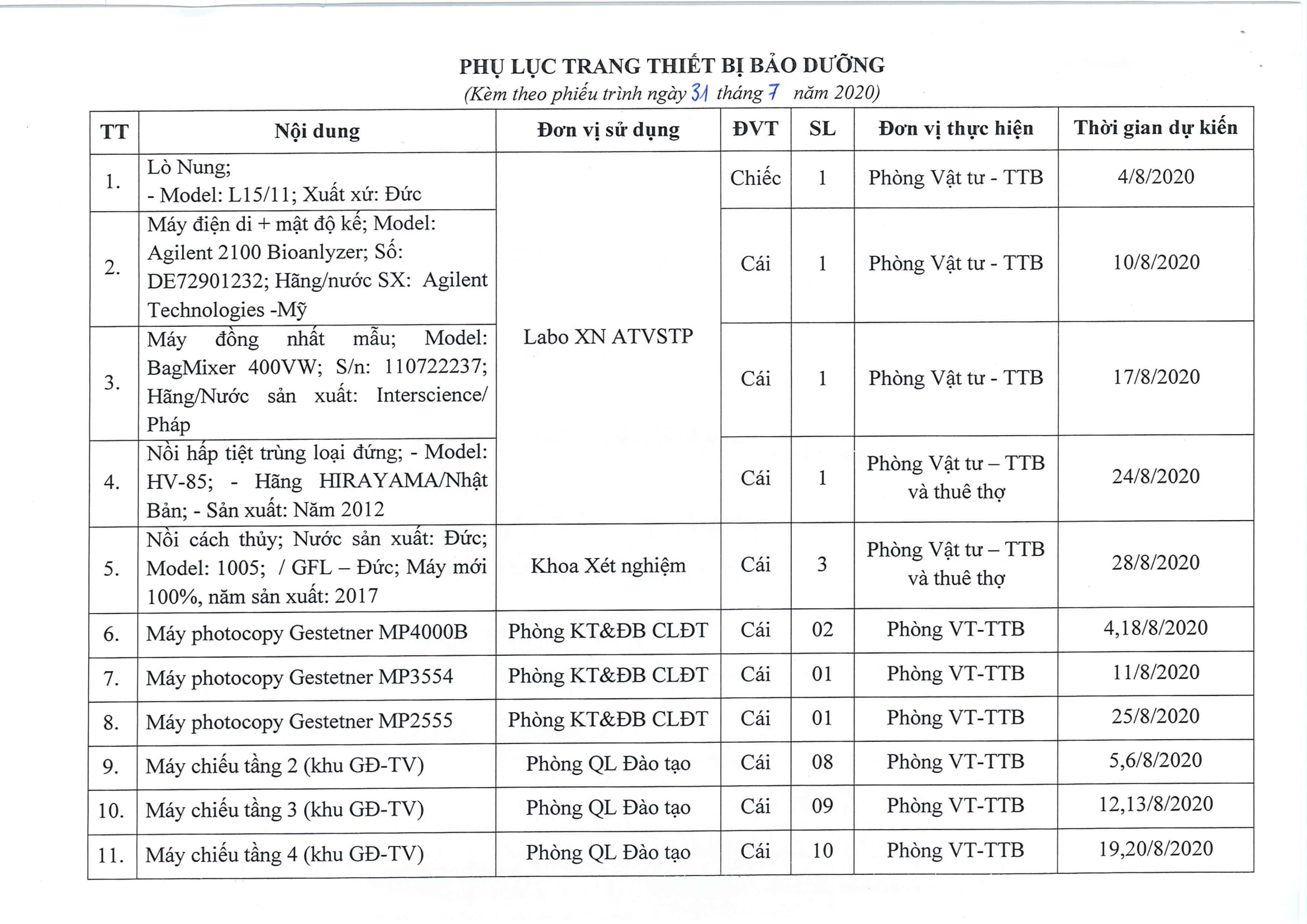 Kế hoạch bảo dưỡng trang thiết bị tháng 7/2020 03/07/2020 08:16' AM