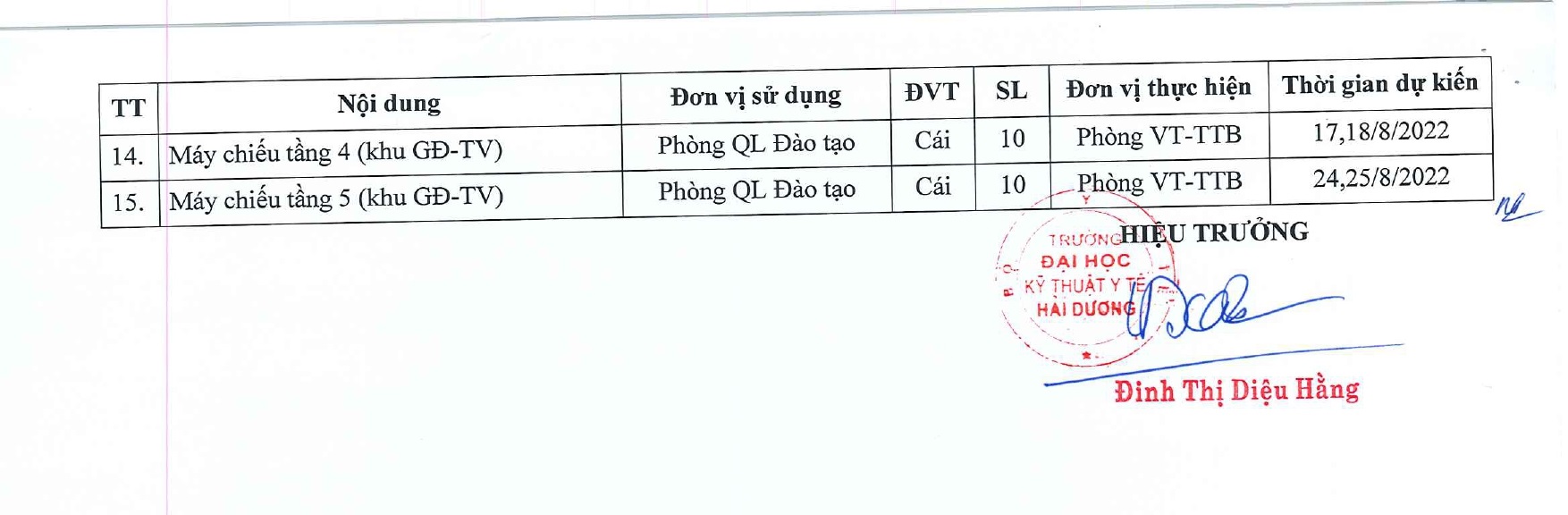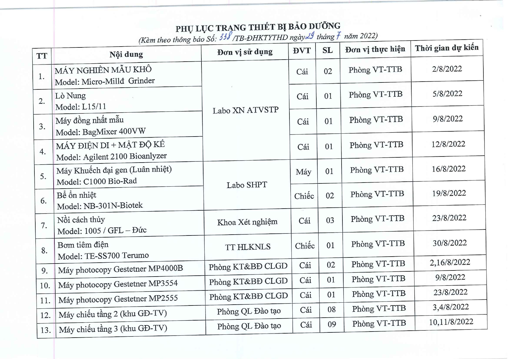 Thông báo kế hoạch bảo dưỡng trang thiết bị tháng 7/2022 12/07/2022 07:39' AM
