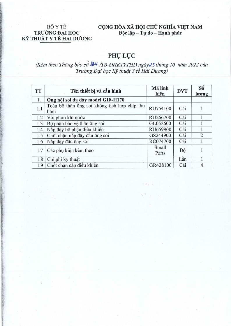 Yêu cầu báo giá của Bệnh viện Trường Đại học Kỹ thuật Y tế Hải Dương (Số 1281/TB-BVĐHKTYTHD ngày 20/10/2025) 20/10/2025 04:32' PM