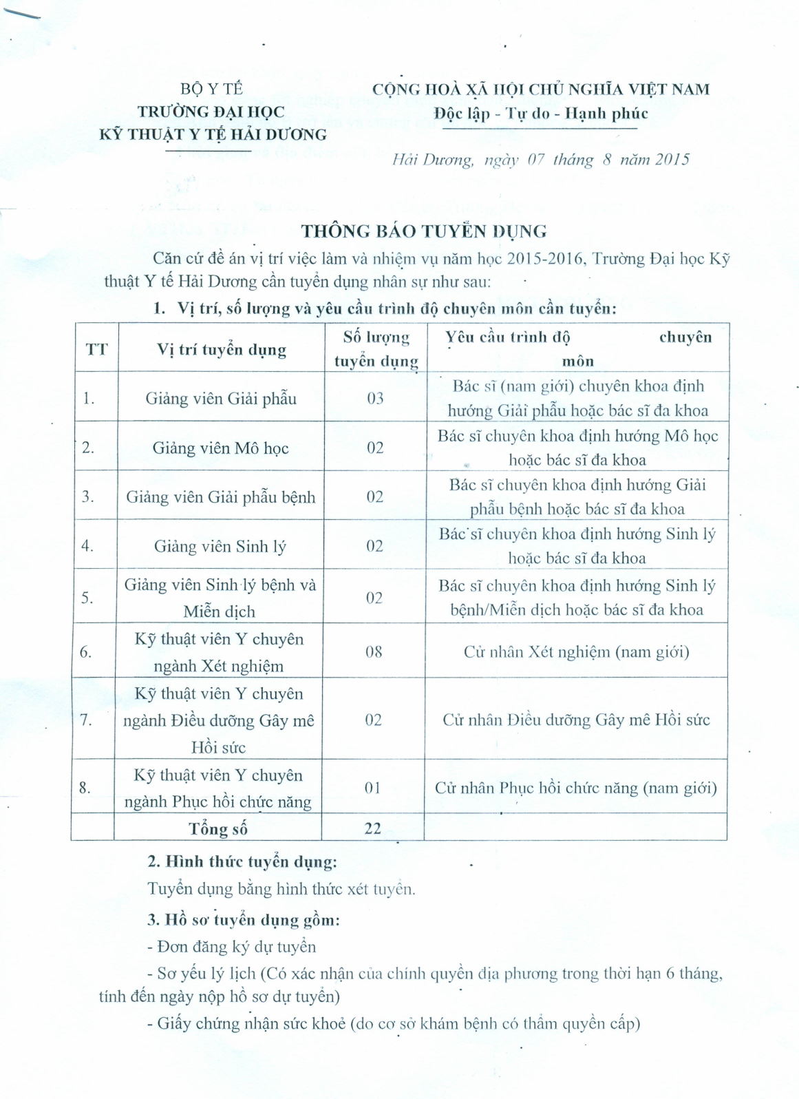 Thông báo | Thông báo tuyển dụng nhân sự tháng 08/2015 Số lượt đọc:
