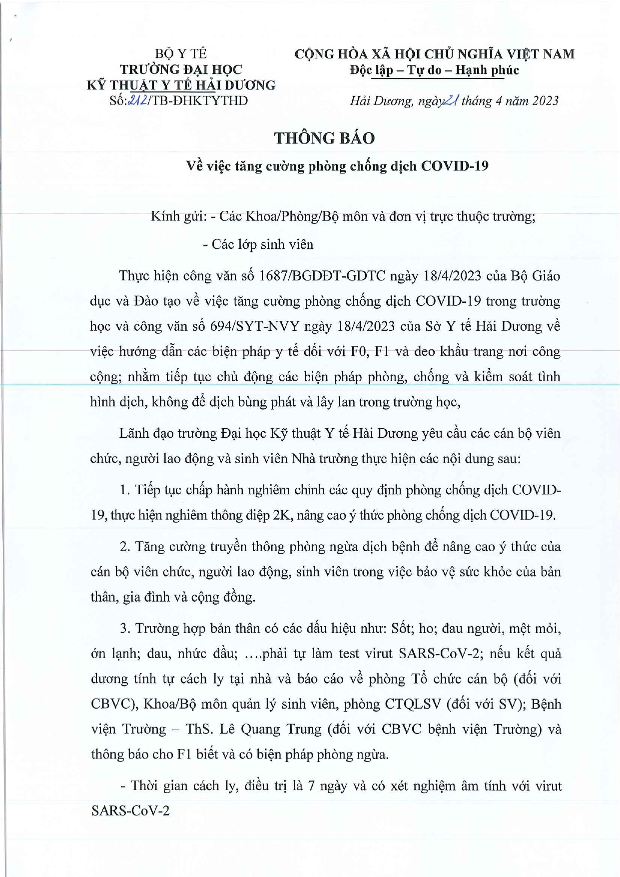 Thông báo | Thông báo về việc tăng cường phòng chống dịch COVID - 19