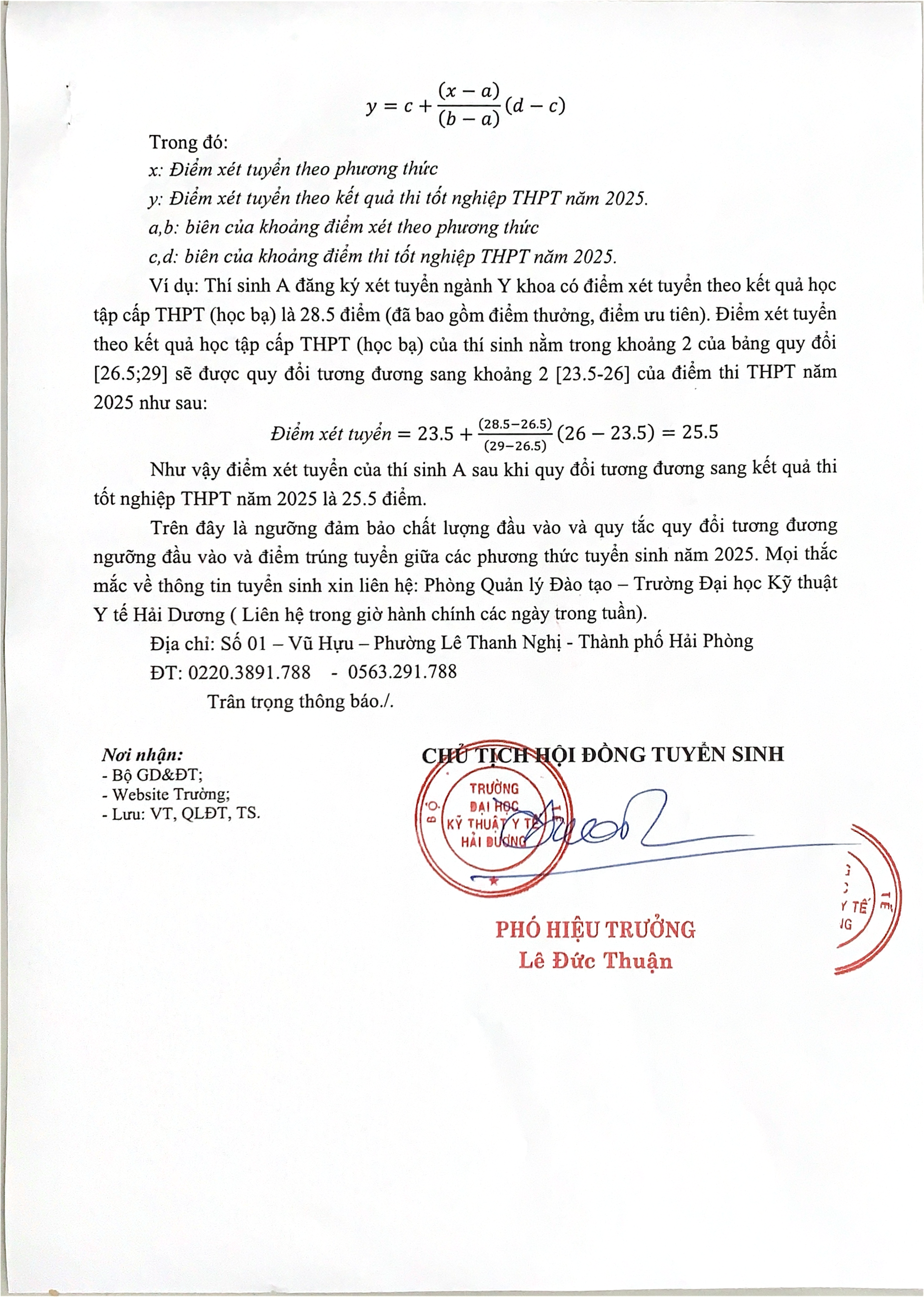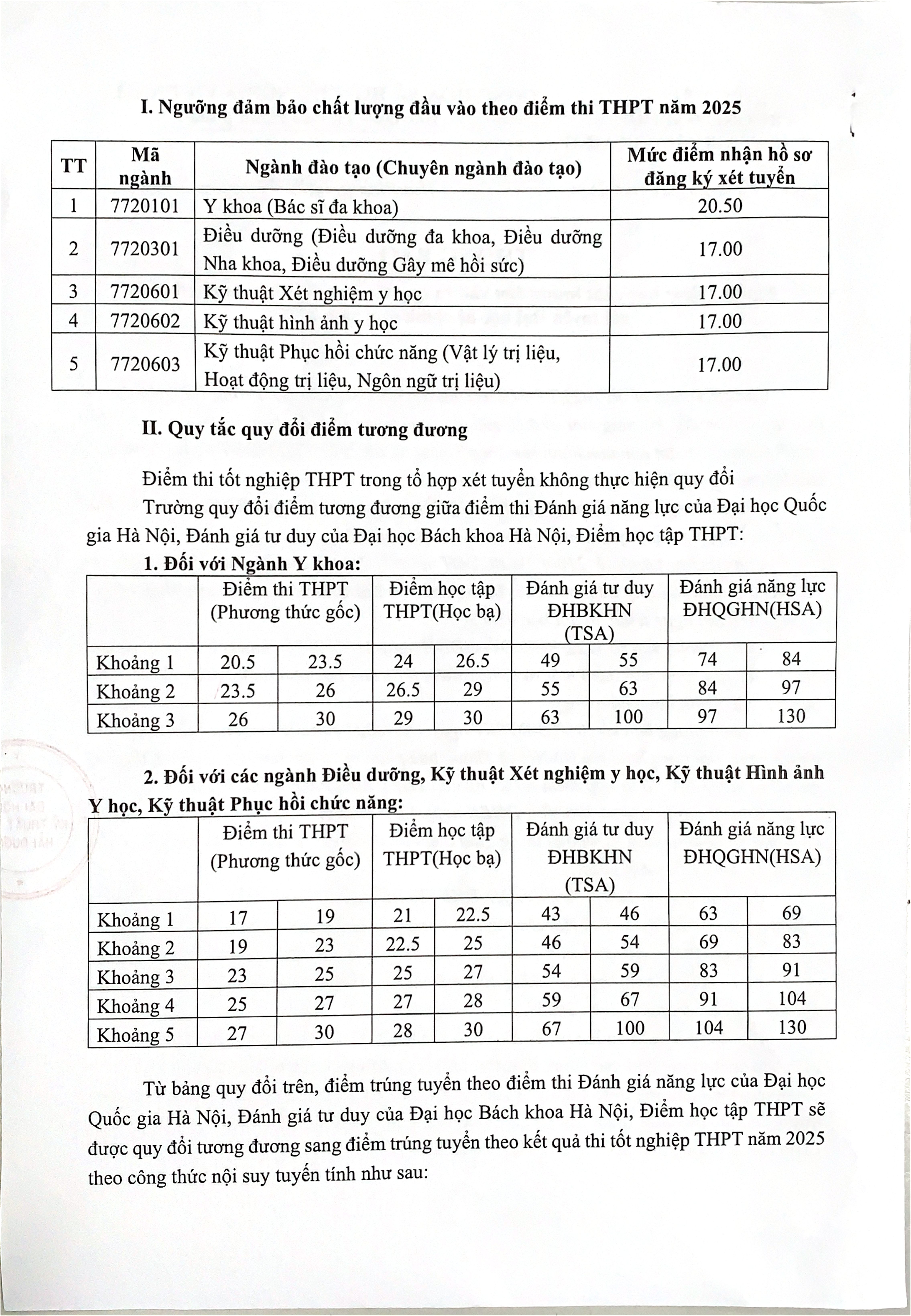 Thông báo tuyển sinh | Thông báo Ngưỡng đảm bảo chất lượng đầu vào và quy tắc quy đổi điểm tương đương xét tuyển đại học chính quy năm 2025