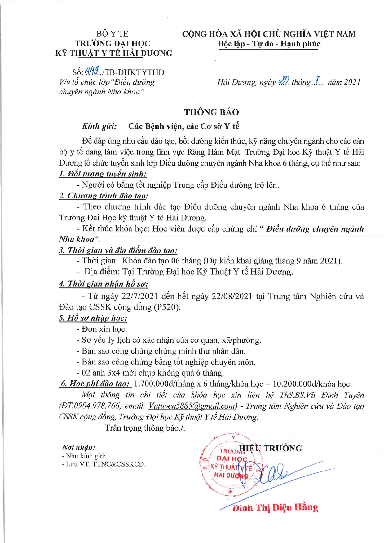 Tuyển sinh lớp "Điều dưỡng chuyên ngành Nha" 6 tháng 09/03/2022 03:24' PM