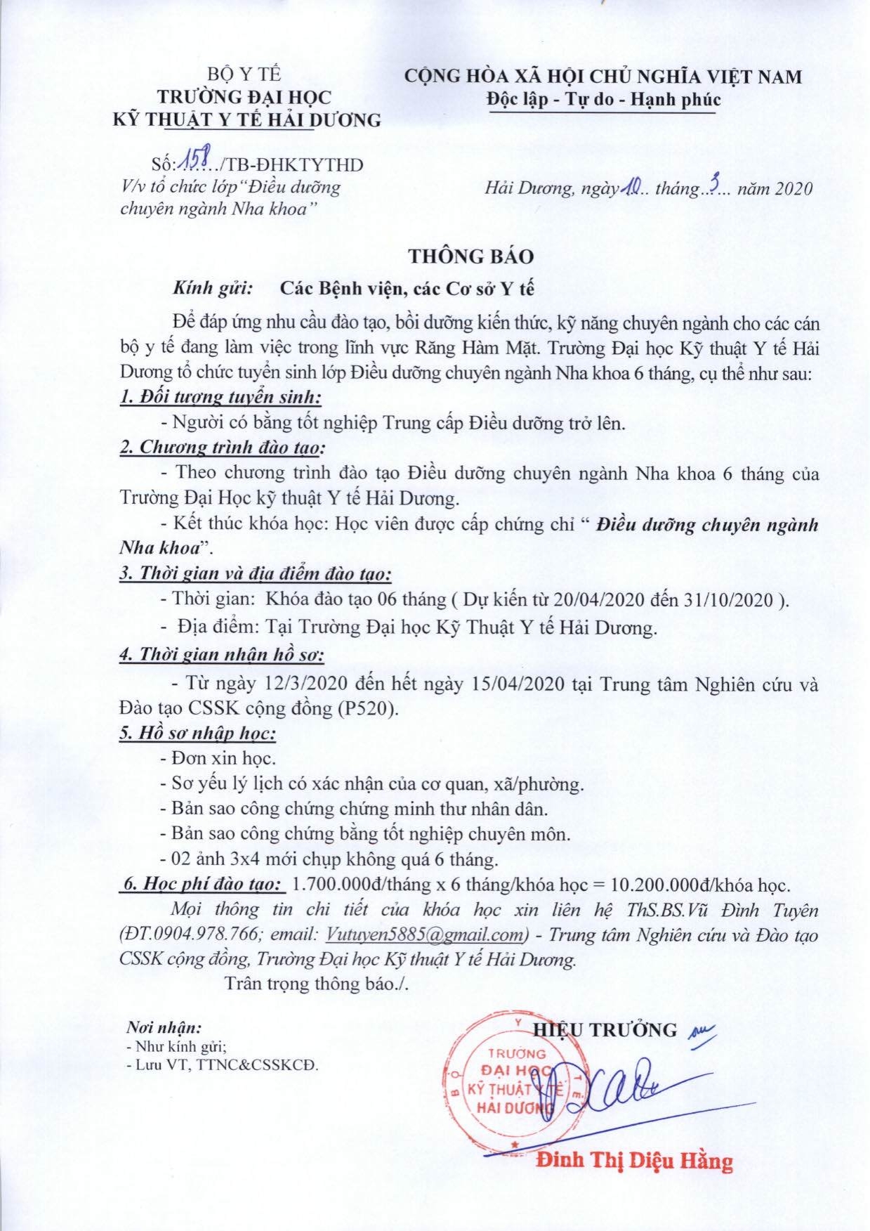 Tuyển sinh lớp "Điều dưỡng chuyên ngành Nha" 6 tháng 09/03/2022 03:24' PM