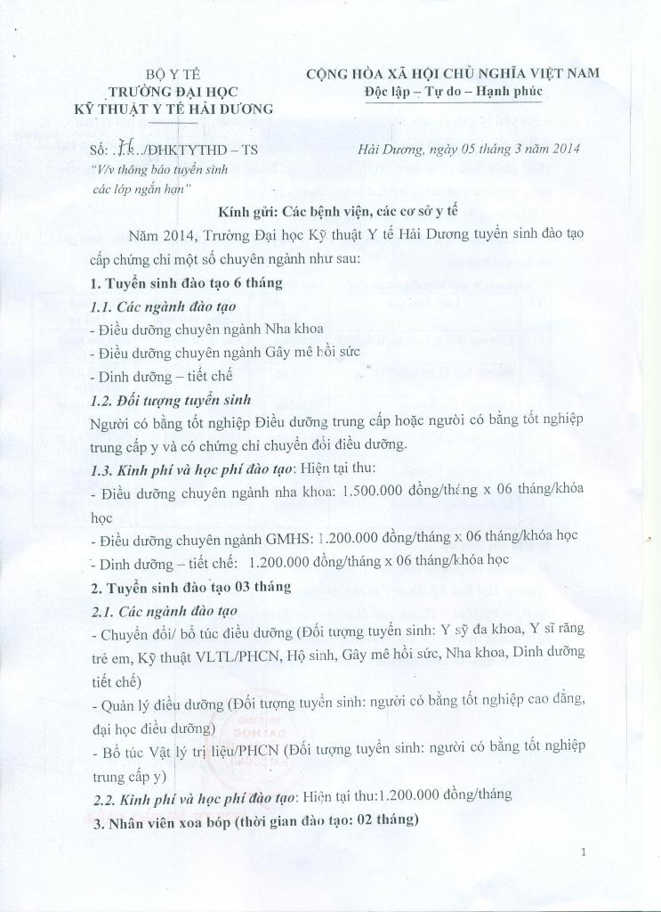 06/03/2014 09:23:49 AM | Tin mới: Thông báo về việc Tuyển sinh Đào tạo liên tục năm 2023 (số 526/CV-ĐHKTYTHD ngày 14/9/2023) 16/09/2023 08:03' AM
