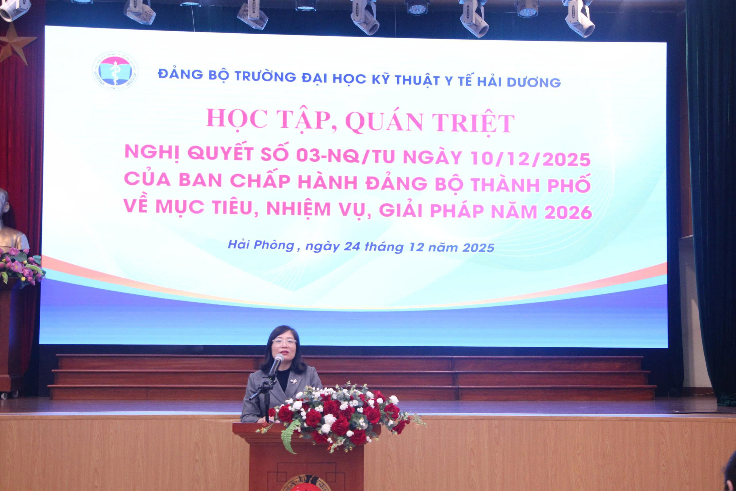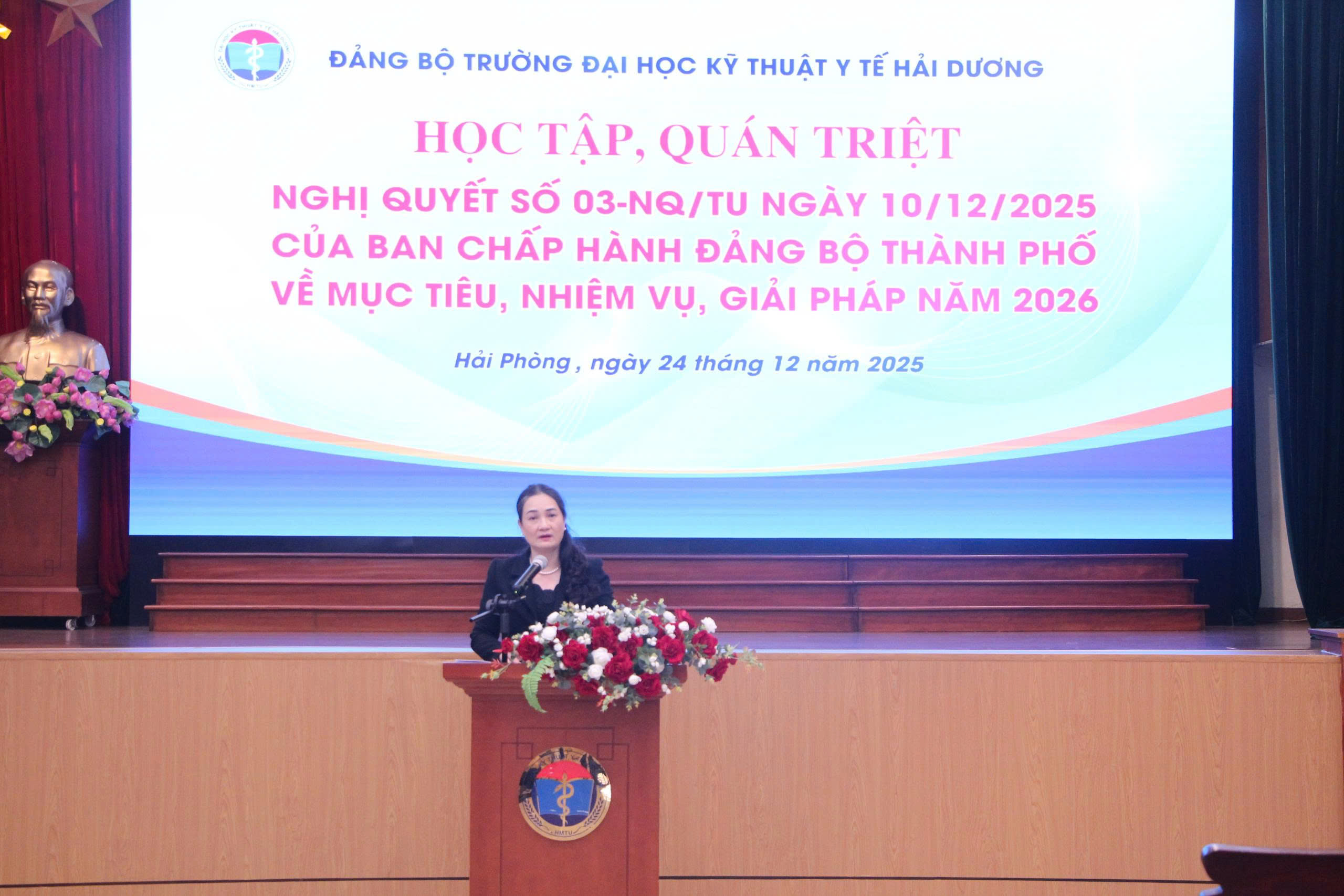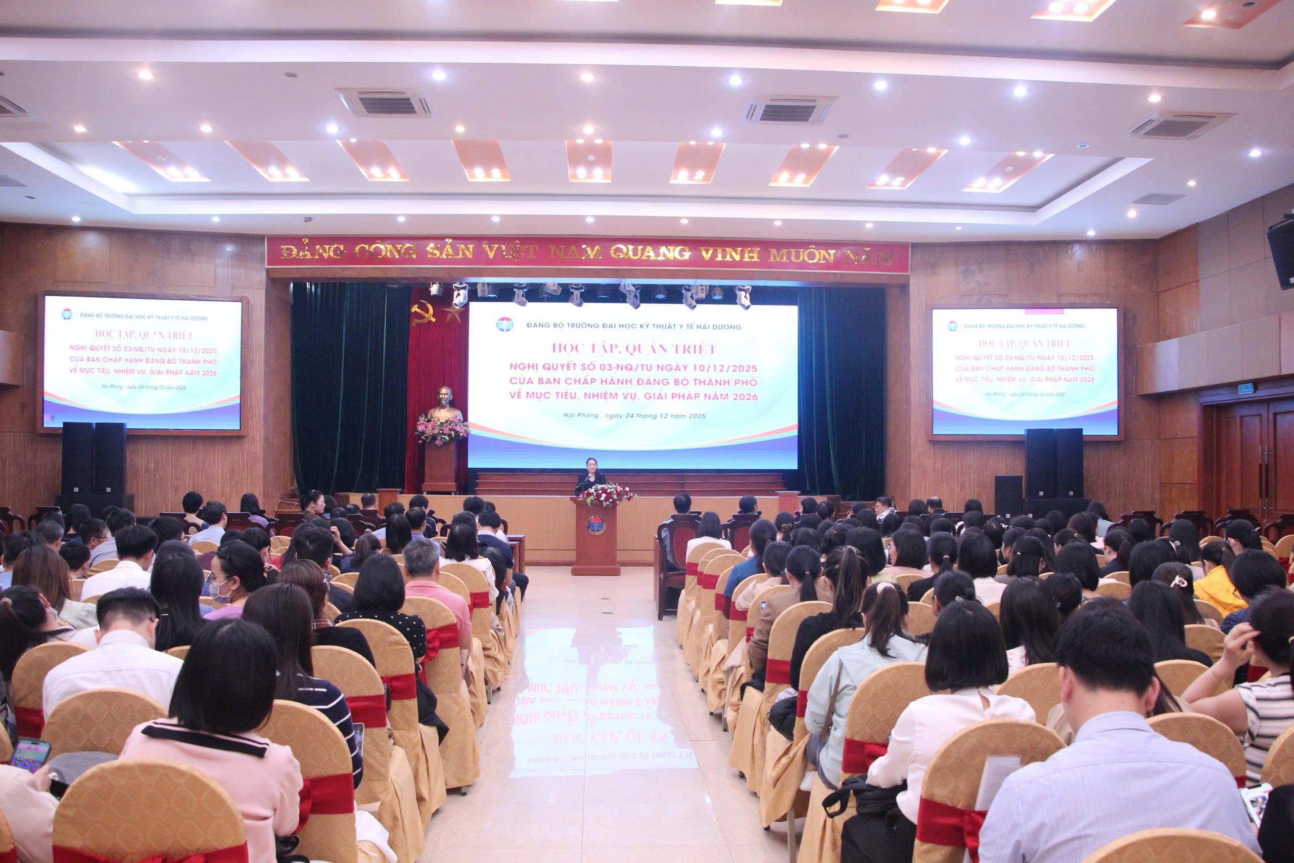Tin tức | Trường Đại học Kỹ thuật Y tế Hải Dương tổ chức “Học tập quán triệt Nghị quyết số 03-NQQ/TU ngày 10/12/2025 của Ban chấp hành Đảng bộ Thành phố Hải Phòng về mục tiêu, nhiệm vụ, giải pháp năm 2026”